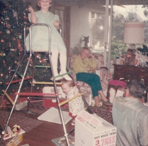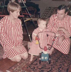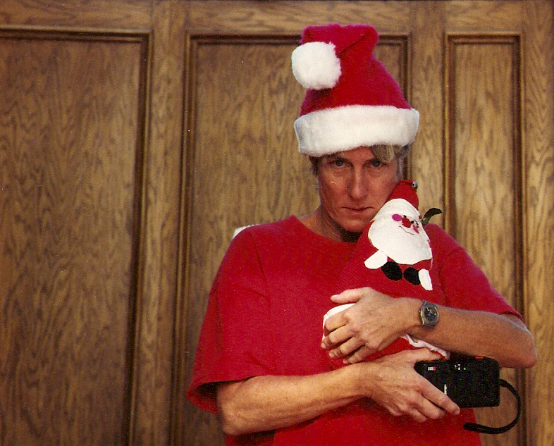 While I don’t remember exactly when it was that Christmas lost it’s patina of wonder for me but it might have been the Christmas morning this disturbing photo of my mother was taken. Yeah, well if she was your mother, you’d be bothered too.