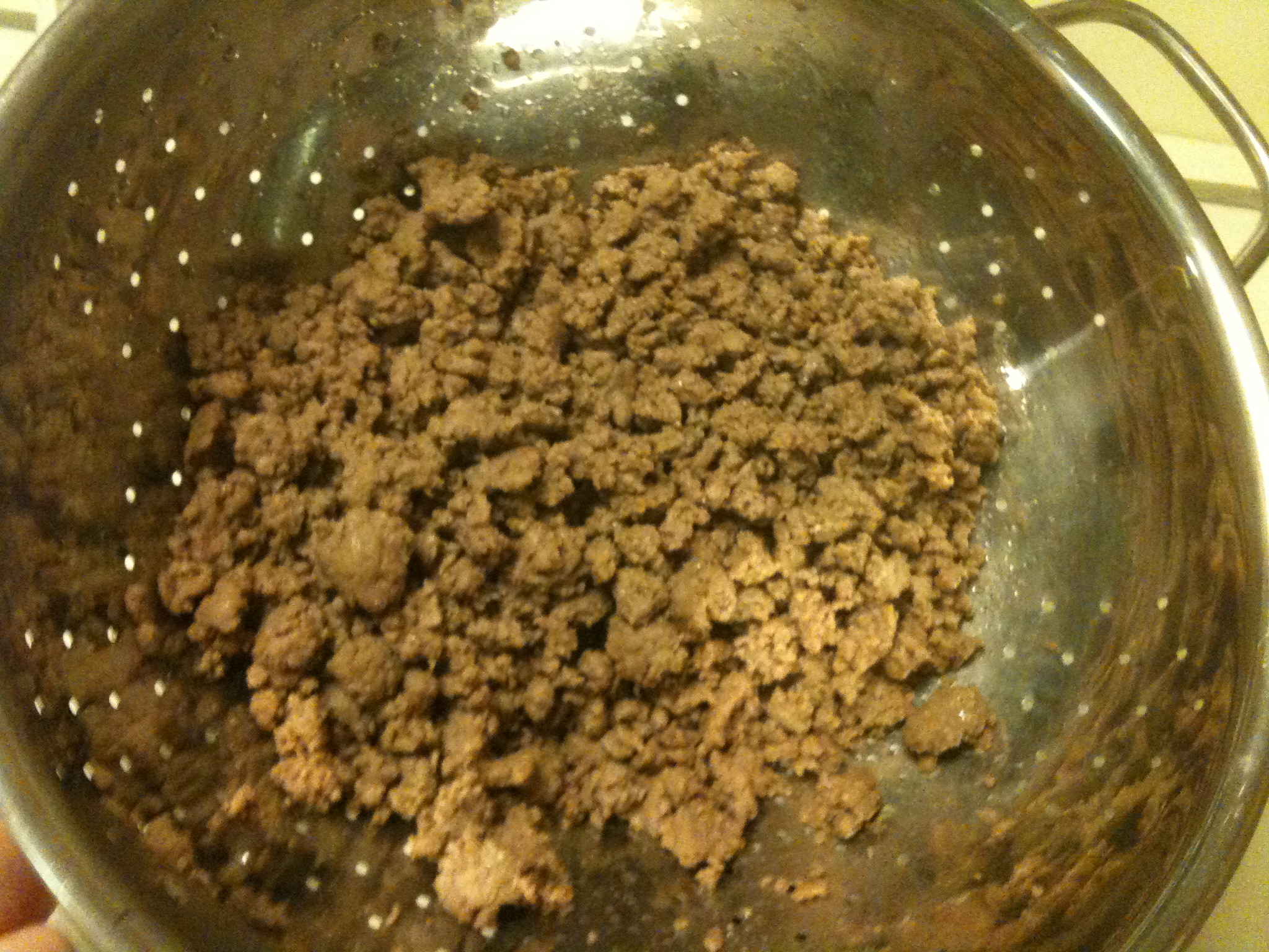 Drain beef in a colander set over a bowl (reserve skillet) and return beef drippings to uncleaned skillet.