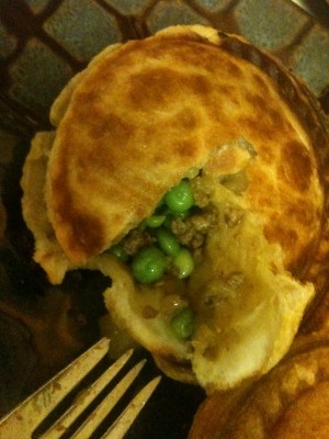 So last night Dave and I decided to give the new toy a whirl. Being a thoroughly modern couple we turned on the iPad (another Christmas gift from Mom. We scored this year) and looked up “Beef Pie” in the Epicurious application. If you’ve not had a chance to take a look at this app – you really should. The food photography will make you hungry. But I digress. We picked the Beef and Curry Pie from the November 2006 Gourmet Magazine.