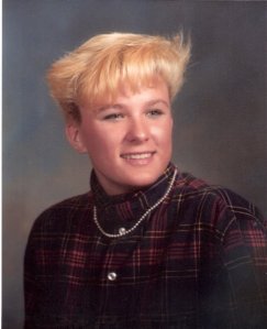 When I reached my senior year, I cut my hair short, bleached it blonde and frequently wore white lipstick, dramatic eyeliner, and had a cigarette dangling from my lip most of the time. I also did copious amounts of drugs and went to all-ages night clubs where I would dance on speakers doing my best Madonna wanna-be dance routines. I was a rebel without a cause or a clue, but I had all the right clothes to pull it off. If only I still had my neon green fishnet belly shirt and white leather pointed toe boots. If only.