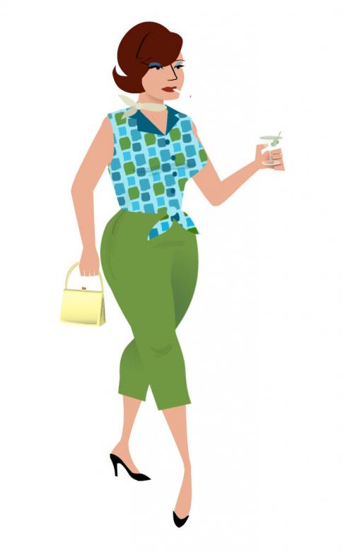 The project assigned the class was to do a portrait. So, I decided who better to do a portrait of than myself? I’m all kinds of fab. Well, at least my alter-ego is! A wee bit of background on the avatar that has become synonymous with Ms. Surly is in order for the neophytes in the cult of Surly. In July of 2009 A&E heralded a new season of their show Mad Men with a tool on their site that would allow you to Mad Men Yourself. This was when Ms. Surly made her official debut dressed for a summer cocktail party. While’s she’s since changed her outfit, she’s not put down her drink or put out her cigarette.