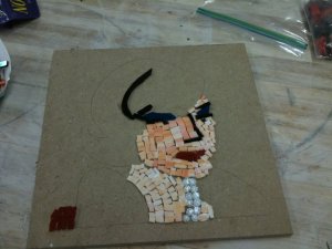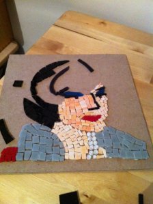 So if you’re a long-time Surlyan (Surlyite? We’ll need to vote on this at the next cult meeting) you know that I’m crafty. Not just in that charmingly devilish way either. Well not crazy crafty like Martha Stewart. I mean I can’t draw or paint. I don’t sew, scrapbook, or bedazzle. However, I do, on occasion mosaic stuff. Nothing fancy. I like to keep it abstract for the most part so that no one will know when I’ve screwed it up. Anyway, I’ve mostly been winging it over the years in true amateur fashion. Recently I thought I’d try stepping up my game and I signed up for a class at the local community college. What I didn’t realize at the time was that I’d signed up for a real art class where they expected me to make art. First class I was pretty sure I was well out of my league, as was my instructor. But I figured, what the hell!