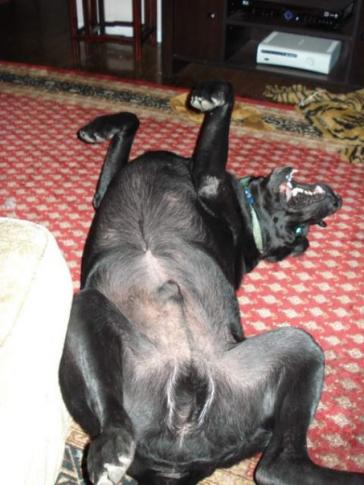 Depends upon which source you look at there’s a myriad of reasons that dogs go around humping each other, people, or inanimate objects. In some cases you can put it down to just good old fashioned sexual attraction. In others you can put it down to asserting dominance or the canine version of playing Twister. In my home you will frequently see Olive, the puppy, try to hump Jack who abruptly sits down and looks bored with the whole game. Other times Sally and Olive will both try air-humping Jack, usually sideways, which makes no sense to anyone. Jack will still be looking bored. Other times we’ll get some hardcore labretard porn with Olive and Jack going down on Sally like a scene in a cheap cable porn film. Usually this is while we’re eating dinner. I think pizza maybe an aphrodisiac for dogs. Our old dog Bruno regularly got an erection when I opened the refrigerator.