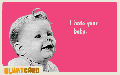 People never believe me when I say that I just really don’t believe in human children. But honestly, I don’t. They are expensive, dirty, and they make a lot of noises that make my brain hurt. When I go to Target and there’s some screaming child in the aisle, I do my best to block them out of my mind. If that doesn’t work, I usually give their parents the missile guided death ray stare. I’m not against other people having children, so long as they keep me out of it. It’s not that I hate children, although, I probably would hate yours. It’s just that I’ve got no interest in them. They do nothing for me. All infants look alike. Sorry, I know you think yours is adorable, but really I just can’t tell one from the other. And they are kinda creepy looking to boot.