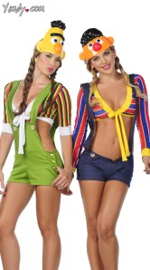 But sexy Sesame Street? Say “WHAT?”. Apparently the fine folks at Children’s Television Workshop were a little perplexed too, mostly because I think they were stupified to see America’s first television gay couple portrayed by two sex kittens, as it appears that Yandy has been forced to pull the pictures promoting their sexy Sesame Street collection. But still. Who gets wood thinking about giving Big Bird an orgasm? Okay. Well I guess I can see where a few furries might have that fetish. Don’t get me started on that. Or the belly button lint you’d have from wearing one of those outfits.